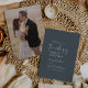 Este marinho azul-escuro moderno convite de casamento é perfeito para um casamento simples. O design boho neutro apresenta uma tipografia rústica única e na moda boêmica em azul escuro e branco minimalista. Personalize as costas com uma foto de noivado.