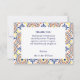 Este RSVP de Casamento Inspirado do Mediterrâneo apresenta uma fronteira tradicional de azulejo espanhola extravagante e na moda em azul-amarelo e marinho. Adicione seus detalhes de casamento usando o modelo. Para obter ajuda ou solicitação personalizada, entre em contato conosco através da loja ou escreva um e-mail em citronelladesign@gmail.com