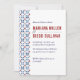 Este convite para o casamento inspirado mexicano ou mediterrânico apresenta uma extravagante e na moda tradicional fronteira de azulejo espanhola em vermelho e azul marinho. Adicione seus detalhes de casamento usando o modelo. Para obter ajuda ou solicitação personalizada (alterar fonte, cores, paleta de cores...), entre em contato conosco na loja ou escreva um email em citronelladesign@gmail.com Paleta de cores: Marinho Azul, indigo azul, azul-céu, cinza clara e vermelho-merlot. Correspondência de itens disponíveis no repositório