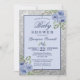 Convites Marinho Floral Azul Prata Chá de fraldas Sparkles