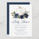 Convites Marinho Floral Azul Pumpkin Dourado Chá de fraldas