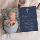 Este elegante convite batismo apresenta um buquê de aquarela de flores azuis e marinhos poeirentas e folhagem prateada numa cruz de folha de papel prateada, acima das palavras "junte-se a nós para o batismo do nosso filho" em elegante caligrafia branca e itálico. Personalize-o com o nome no script branco e os detalhes na fonte sans serif em um fundo azul marinho. Adicione facilmente uma foto vertical do seu filho ao lado esquerdo do convite. A parte traseira da placa é azul marinho estável.