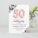 Marinho Floral Blue Blush Pink Balloon 50th Aniversário Convite O design apresenta marinho de aquarela azul e flores cor-de-rosa pinceladas com sotaque rosa dourado. Se você quiser mudar os balões numerados, sinta-se à vontade para me enviar um e-mail em panggadesigns@gmail.com