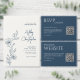 Convites Marinho Floral Desenhado Moderno Chá de casamento
