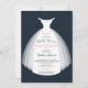 Chá de panela moderno de noiva com um lindo vestido branco de noiva colocado sobre um fundo azul escuro. Sacudir o convite para o chá de vestimenta de chic e na moda para ver uma floral de cor d'água correspondente para um toque especial extra. Convidar chá de panela contemporâneo para um chá de panela, chá de panela de verão, chá de panela de outono ou chá de panela de inverno. Visite nosso compro para ver esta design popular de noiva em várias cores.