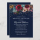 Convites Marinho Floral Glitter Chá de panela Borgonha