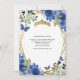 Marinho Botânico Floral Azul Azul Azul Azul Azul Amarelo Dourado Tiara Sparkle Glitter RSVP Aniversário Quinceañera Convite