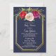 Um belo convite para chás de fraldas florais que inclui flores de cor-de-água, cor vermelha, ameixa e creme rosa + uma moldura dourada contra fundo azul marinho. Entre em contato comigo se você quiser ajuda para personalizar este convite para chás de fraldas.