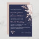 Se você está tendo seu dia de casamento online através de Zoom ou outra plataforma virtual, você ainda pode manter com tradições antigas enviando aos seus entes queridos este convite elegante de casamento, mas com a informação que você precisará para uma cerimônia virtual. O design é um fundo azul marinho na frente complementado com um design floral branco elegante com uma camada rosa suja. Adicionado a este convite especial está o símbolo Wi-Fi personalizado com um coração. Personalize facilmente o texto com todas as suas próprias informações usando o modelo fornecido. Uma placa de gabinete neste design correspondente está disponível para enviar juntamente com seu convite com informações sobre como RSVP através do seu site. Personalize ainda mais para alterar a cor de fundo ou os estilos de fonte.