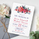 Modelo de convite para casamento elegante, russo, com um vibrante buquê vermelho-boho, vermelho-burgundy e rosado, com folhagem azul-marinho escura e letra de tipografia quic. Preencha suas informações nos pontos, Você pode personalizá-las mudando ainda mais as fontes, as cores das letras ou a cor vermelha brilhante do plano de fundo no verso. — O convite é adequado para primavera ou floral chic de verão | recepções de casamento ou festas modernas de jardim. — Se precisar de assistência, por favor, entre em contato comigo!