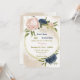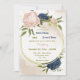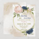 Bonito convite para o casamento, com marinhos e flores cor-de-rosa e folhas verdes num círculo de ouro elegante. São simulados os detalhes do brilho dourado. É adequado tanto para os convites para o casamento como para o noivado. PARA MAIS PRODUTOS CORRESPONDENTES, clique na coleção acima ou entre em contato comigo