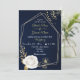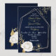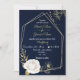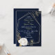 elegantes flores brancas e douradas de luxo com algumas folhas douradas no quadro geométrico marinho azul convite ao casamento Os detalhes da brilha são simulados