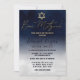 Este convite para o Bar Mitzvah, moderno e artístico, é a escolha perfeita para o seu filho para o seu dia especial. Ele apresenta um gradiente marinho azul e branco pintado à mão. No topo do convite está uma falsa estrela de ouro impressa de David e a tipografia personalizada, incluindo o nome hebraico de seu filho. É um design único, legal e moderno para o homem jovem contemporâneo e simples, mas na moda.