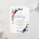 Convite para casamento floral de cor d'água elegante. Belo convite para o casamento floral moderno, com flores pintadas à mão em azul marinho e laranja queimado com um roteiro elegante de caligrafia. Você pode personalizar o texto, o estilo da fonte, a cor e o tamanho em frente e atrás do convite. Por favor, sinta-se à vontade para contactar-me para obter os itens correspondentes.