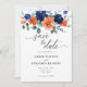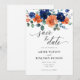 Mão elegante pintou cor d'água queimada laranja e marinho azul boho floral Salve o cartão de data. Trabalho de arte de aquarela original. Uma parte de uma suíte de casamento completa. Vá para Personalizar link Adicional para alterar a fonte, o tamanho e a cor. Sinta-se livre para me contactar para obter itens correspondentes.