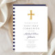 Marinho Moderno Personalizado Blue Stripes Cross Boy First Communion.