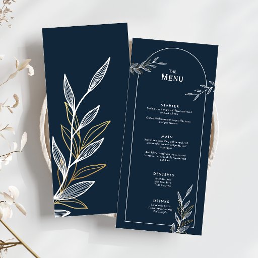 Se você é uma noiva moderna que procura um convite elegante e eterno, esta design é a certa para você. Com uma bela combinação de marinho azul e folha de ouro cuidadosamente arrumada, ela apresenta um estilo contemporâneo que complementa qualquer paleta de cores.
