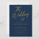 Convites Marinho moderno e casamento de Script Dourado