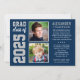 Anuncie a sua classe de formando de segundo grau 2022 em estilo com este anúncio e convite de festas de graduação multifoto. O cartão "Agora e Depois" de dois lados apresenta duas fotos do formando (uma imagem atual e mais antiga do primeiro dia de escola) com um design simples e masculino com uma letra inspirada em camisa desportiva. Marinho azul, cinzas prateadas e cores brancas podem ser personalizadas para corresponder às cores escolares. Um padrão de listras brancas se veste na parte de trás do cartão. *Dica de Foto: recorte suas fotos em forma quadrada antes de carregá-las.