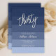 Modelo costeira, praia ou aniversário de 30 anos náutica que apresenta um fundo abstrato de cor d'água pintado de ondas profundas do oceano azul e caligrafia moderna para o título: "trinta". Clássico e elegante, simples e moderno, é uma escolha adorável para um verão, uma praia, oceano ou celebração marítima de um trigésimo aniversário.