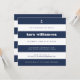 Escolha esses marinhos de verão e convites de chá de panela brancos para uma visão moderna sobre o aspecto náutico clássico. Cartões de convite quadrados exclusivos possuem faixas largas, horizontais, azuis e brancas de marinho com uma mistura de tipos modernos e retrorreflectores e uma pequena ilustração de âncora branca no topo.