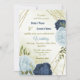 Convites marinho poeirento flores azuis folhas verdes casam