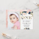 design com impressão, moderna e elegante, Marinho com impressão azul e cor-de-rosa azul e Dourado Convite para fotografia do primeiro aniversario brilhante que pode ser personalizado com o seu texto. Clique no botão "Personalizar" e use a ferramenta design para modificar este modelo. Veja na loja de Design de arte gráfica outros produtos que combinam com este design!