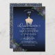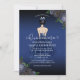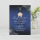 Este convite elegante da Quinceañera apresenta uma garota em um vestido de marinho com sotaque floral e rosa de ouro. A parte traseira apresenta os padrões azul e rosa ouro do marinho. Fácil de personalizar clicando em "Personalizar".