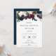 Arranjo floral botânico de cor marinho, roxo e marfim, moderno e elegante, chá de panela. A placa apresenta o modelo do estilo design de tipografia moderno e coordena o suporte a cores azuis do marinho.