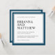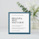 Simples e saboroso, este design de convite de casamento quadrado tem uma dupla fronteira azul marinho com um fundo central branco. Os quadros de texto são nítidos e elegantes, com ênfase nos nomes da noiva e do noivo que aparecem em grande impressão. O esquema de cores é uma escolha maravilhosa para casamentos costeiros ou casamentos de destino, assim como outros locais escolhidos. O estilo clássico simples é sempre uma boa escolha em qualquer estação do ano.