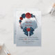 marinho romântico, flores azuis e burgundy e convite para casamento de coroa botânica de fita fofa.