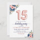 Marinho Floral Azul Blush Cor-de-Rosa Balão Quinceañera 15 de Aniversário Convite de Aniversário O design apresenta marinho de cor-de-água azul e flores cor-de-rosa pinceladas com um sotaque de balão de ouro rosa. Se você quiser mudar os balões numerados, sinta-se à vontade para me enviar um e-mail em panggadesigns@gmail.com