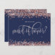 Convide o seu melhor amigo a ser a sua madrinha de casamento com este brilho especial de ouro rosa e marinho moderno, mas elegante convite "serás a minha madrinha de casamento" com uma bela letra de caligrafia de escrita