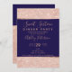 Uma cinética moderna, bonito e elegante brilho rosa de ouro falso com faixa com bloco de cor azul marinho Doce 16 convites de aniversário com faixa rosa de ouro. Perfeito para uma festa de chic.