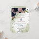 Lindas flores rosa e marinho azuis românticas com convite para casamento botânico de folhas verdes