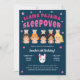 Convite de aniversário Llama Pajama Sleepover, bonito, com 5 meninas de diferentes cores de cabelo e pele. Notem a lhama fofa no topo do seu pijama!