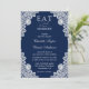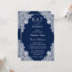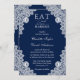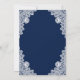 Complemente sua festa de casamento rústica azul marinho com esses convites de casamento elegantes e românticos com rendas florais brancas em um fundo azul marinho.