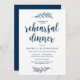 Planejar uma celebração do Janto de ensaio do casamento com a futura noiva e futura noiva, antes do seu grande dia? Convide os hóspedes com este Cartão de Convite para Janto de Ensaio de Casamento com o guião rústico perfeito. Adicione os detalhes do janto de ensaio em letra/letra correspondente. Cartão branco, em Marinho azul. #TeeshaDerrick