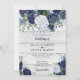 Um convite elegante com seus detalhes de casamento cercado por lindas flores em tons de marinho azul, branco e rico em um fundo de madeira branco rústico. Você pode adicionar sua própria mensagem especial e alterar o estilo da fonte indo para o menu personalizar. Este convite é parte de uma bela suíte de casamento que pode ser totalmente personalizada.