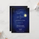 Os convites de casamento azuis Elegantes marinhos com luzes de jarro e de cordas apresentam-se com tipografia branca para um aspecto de na moda. Seria ideal para uma noite, ou casamento de celeiro rústico.