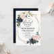 Chá de panela geométrico azul-escuro com buquê elegante de azul-marinho, azul-real, branco, rosa-esbranquiçado e folhas verdes-sábio de eucalipto e elegante quadro neutro geométrico de brilho. Entre em contato comigo para obter ajuda sobre a personalização ou se você precisar de outro produto com este design.