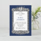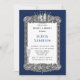 Você vai adorar esse fundo de textura azul marinho com uma armação De lis com fêmur prateado e uma coroa. Vinculando convites para corresponder.