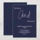 Este elegante convite de casamento azul marinho é perfeito para um casamento moderno. o simples design apresenta uma caligrafia branca elegante num fundo azul.