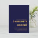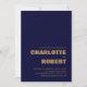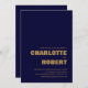 Um sofisticado convite de casamento azul-marinho com texto de ouro moderno.