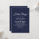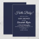 Este elegante convite para Chás de fraldas azuis de marinho é perfeito para um Chá de fraldas moderno. o simples design apresenta uma caligrafia branca elegante num fundo azul de marinho.