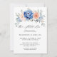 Marinho azul esbranquiçado cor-de-rosa floral continuamos a fazer o convite de renovação com buquê elegante de marinho azul, azul real, branco, rosa de jardim esbranquiçado, hydrangea e folhas verdes de eucalipto sábio. Entre em contato comigo para obter ajuda sobre a personalização ou se você precisar de outro produto com este design.