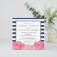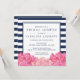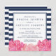 Belo marinho e convites de chá de panela cor-de-rosa anunciam seu evento para convidados no estilo moderno, mas elegante. As placas quadradas apresentam um fundo azul-marinho-chic e uma faixa branca e um agrupamento de peões aquosos em quartzo cor-de-rosa brilhante e rosa-mole, uma cor do ano de 2016. Adicione seus detalhes de evento em uma combinação de teclas de bloco e itálico para uma aparência clássica com um toque.