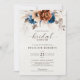 Elegante azul-Marinho, Terracotta, Chá de panela de tema floral da Terra Laranja com um buquê elegante de azul-Marinho, rosas de cor Terracotta e folhas de eucalipto. Entre em contato comigo para obter ajuda sobre a personalização ou se você precisar de outro produto com este design.