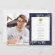 Apresentando delicadas folhas verde-aquarelas em um fundo azul-marinho, este convite para festas de formatura chic pode ser personalizado com sua foto de formando e detalhes de celebração. Projetado por Thisnotme©