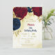 Belo convite de aniversário com marinho azul escuro e flores vermelhas e folhas de ouro. PARA MAIS PRODUTOS CORRESPONDENTES, clique na coleção acima ou entre em contato comigo